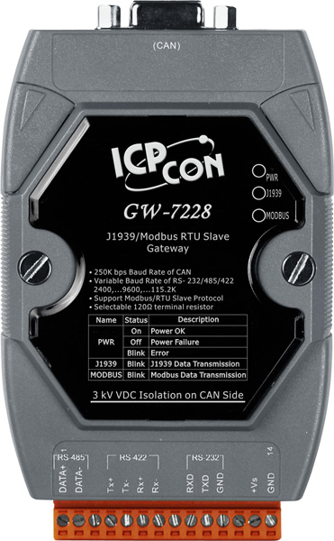 Преобразователь GW-7228-G CR J1939/Modbus RTU Slave Gateway (RoHS) от компании ICP DAS предназначен для эффективной интеграции устройств, использующих протоколы J1939 и Modbus RTU. Это устройство обеспечивает надежную и быструю передачу данных между различными системами, что особенно важно в промышленных приложениях, где требуется высокая степень совместимости и надежности.