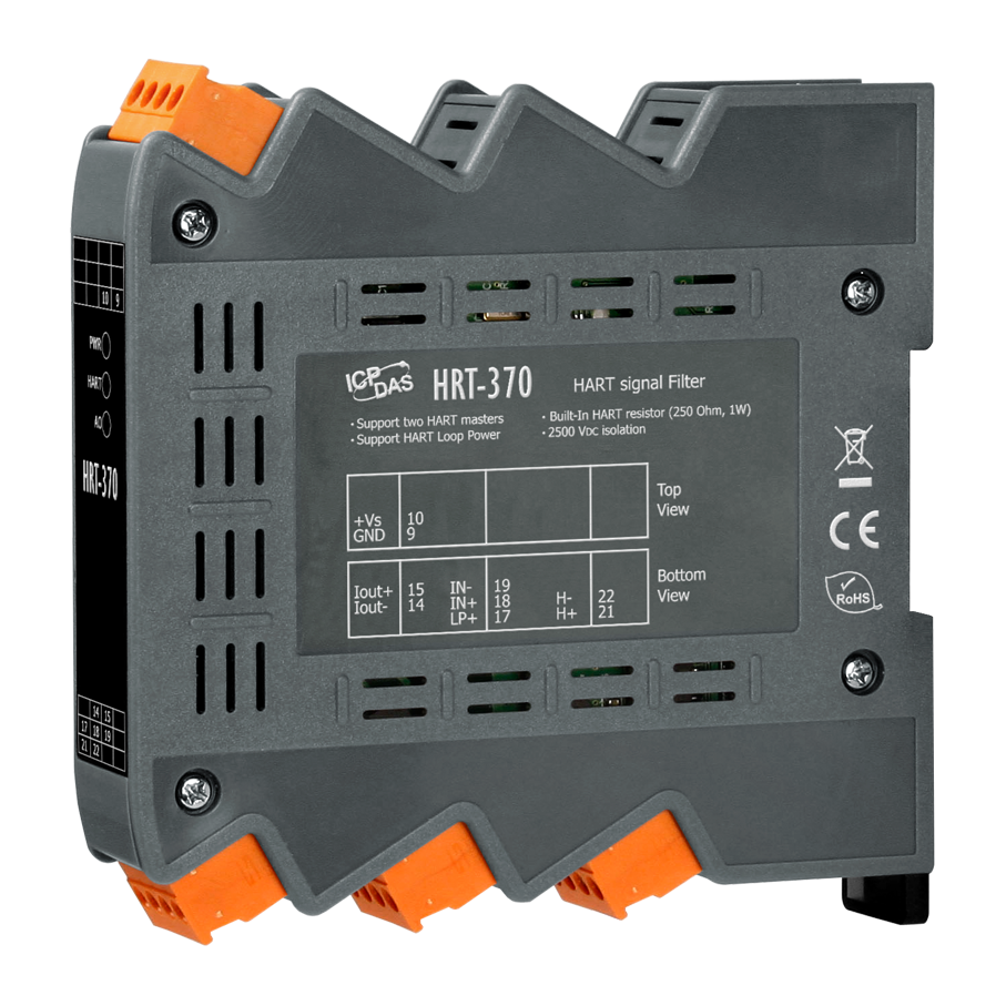 Преобразователь HRT-370 от ICP DAS предназначен для фильтрации HART-сигналов, обеспечивая одновременную передачу как аналогового, так и цифрового сигналов без взаимных помех. Это устройство особенно полезно в системах автоматизации, где требуется точный сбор и обработка данных с полевых приборов, поддерживающих протокол HART.