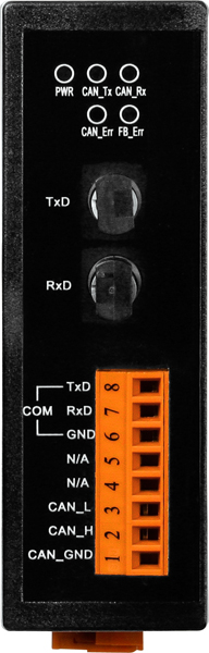- Интерфейс CAN: один порт, поддерживающий скорости передачи от 10 Кбит/с до 1 Мбит/с, совместимый со спецификациями ISO 11898-2 CAN 2.0A/B. Приемопередатчик CAN: NXP 82C250. Передаваемые сигналы: CAN_H, CAN_L, CAN_GND. Разъем порта CAN: клемма. Терминальный резистор: 120 Ом.