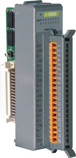 Модуль I-8068-G CR совместим с контроллерами ICP DAS, оснащёнными параллельной шиной, что обеспечивает простоту интеграции в существующие системы автоматизации. Для подключения сигналов используются клеммные колодки под винт, что упрощает процесс монтажа и обслуживания устройства.