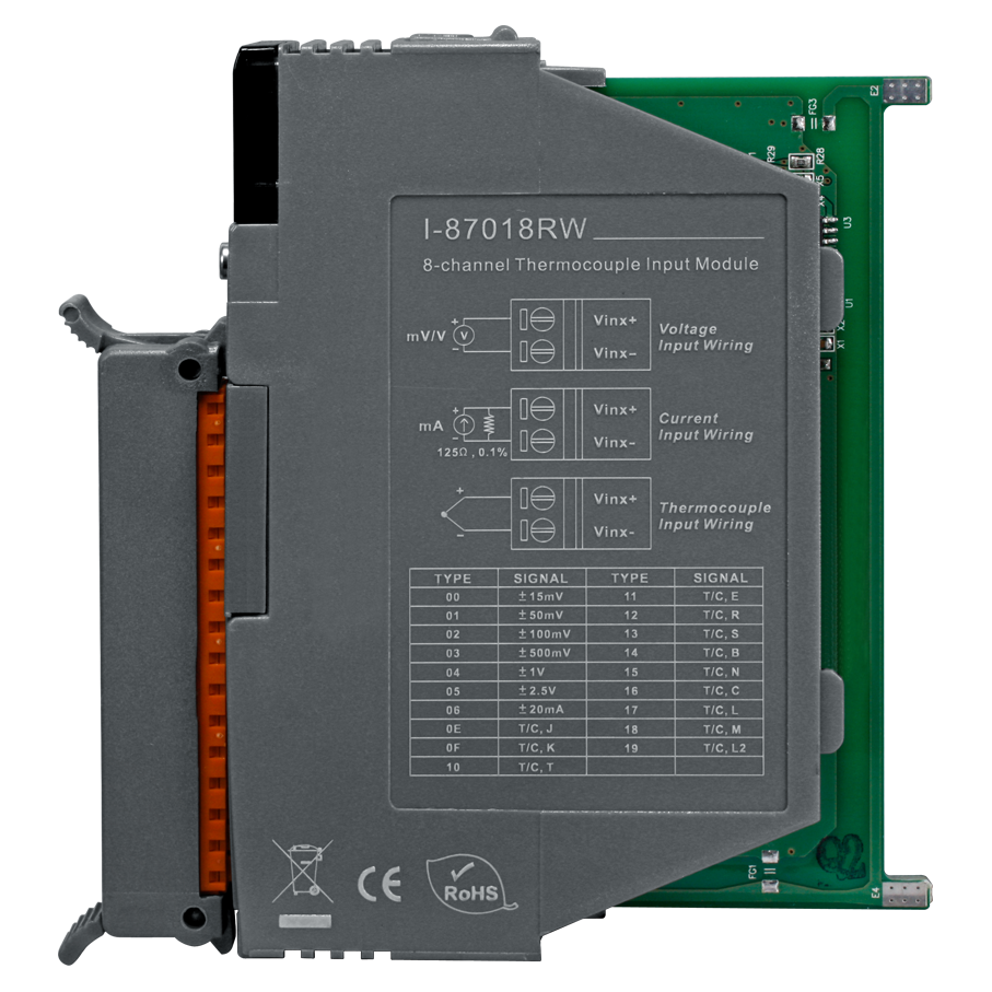 Модуль I-87018RW-G CR от компании ICP DAS предназначен для высокоточного измерения температурных показателей с помощью термопар. Он оснащён 8 дифференциальными входами, поддерживающими широкий спектр типов термопар, включая J, K, T, E, R, S, B, N, C, L, M и LDIN43710. Это обеспечивает гибкость при выборе термопар в зависимости от специфики измеряемых температурных диапазонов.