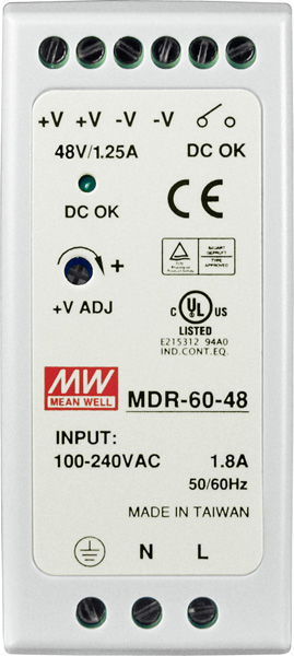 Блок питания MDR-60-48 от компании ICP DAS предназначен для обеспечения надежного и стабильного питания промышленных устройств с номинальным выходным напряжением 48 В и мощностью 60 Вт. Устройство выполнено в компактном корпусе, предназначенном для монтажа на DIN-рейку, что упрощает его интеграцию в различные промышленные системы.