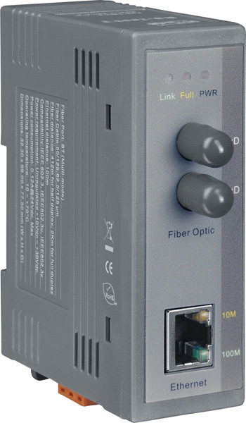 - Порты: один порт Ethernet 10/100Base-TX с разъемом RJ45 и один порт 100Base-FX с разъемом ST для подключения многомодового оптоволокна.