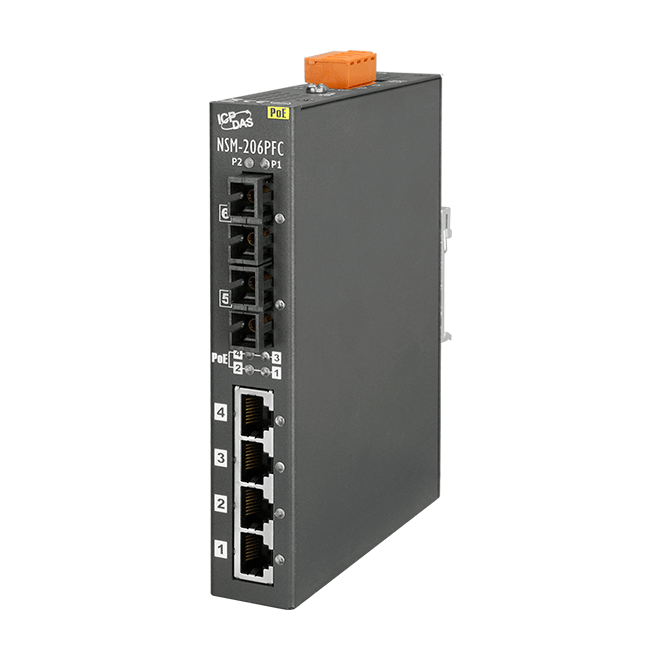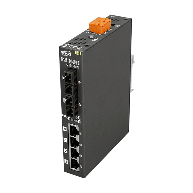 Коммутатор NSM-206PFC CR от ICP DAS предназначен для обеспечения надежной и эффективной передачи данных в промышленных сетях. Он оснащен четырьмя портами Ethernet 10/100 Мбит/с с поддержкой PoE (PSE) и двумя оптоволоконными портами, что делает его идеальным решением для различных промышленных приложений.