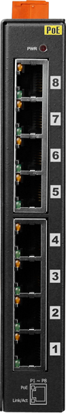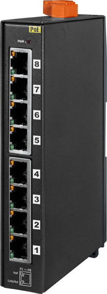Коммутатор NSM-208PSE CR от ICP DAS представляет собой промышленное неуправляемое устройство уровня 2 (Layer 2) с 8 портами Ethernet 10/100 Мбит/с, поддерживающими технологию Power over Ethernet (PoE) стандарта IEEE 802.3af. Каждый порт PoE способен обеспечивать максимальную мощность до 15,4 Вт, что позволяет питать подключенные устройства, такие как IP-камеры, точки доступа Wi-Fi и VoIP-телефоны, непосредственно через Ethernet-кабель, упрощая установку и снижая затраты на дополнительное электропитание.