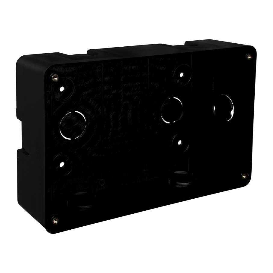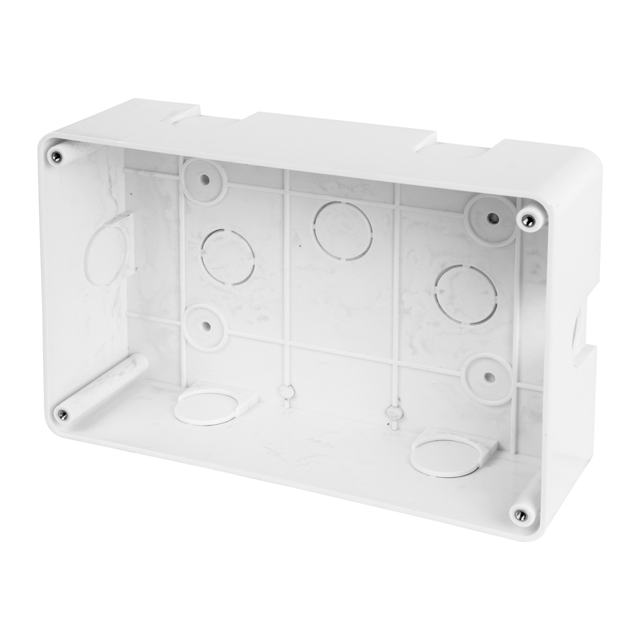 Коробка выполнена из прочного пластика ABS+PC, что гарантирует долговечность и устойчивость к механическим повреждениям. Ее габаритные размеры составляют 200 x 130 x 56 мм, что соответствует размерам сенсорных панелей TPD-703 и TPD-703-64, обеспечивая точную и безопасную установку.