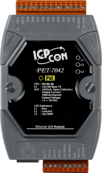 Модуль PET-7042 CR от компании ICP DAS представляет собой Ethernet-устройство с 16 каналами изолированного дискретного вывода типа Sink. Он обеспечивает надежное управление внешними устройствами в промышленных автоматизированных системах, предлагая гибкость в выборе источника питания и простоту интеграции благодаря поддержке PoE.