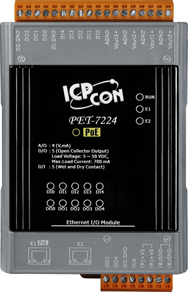 Модуль PET-7224 CR от компании ICP DAS представляет собой Ethernet-устройство ввода/вывода, оснащённое 4 каналами аналогового вывода, 5 каналами дискретного ввода и 5 каналами дискретного вывода. Встроенный 2-портовый Ethernet-коммутатор обеспечивает гибкость подключения и расширение сети. Возможность питания по технологии Power over Ethernet (PoE) упрощает установку и снижает потребность в дополнительных источниках питания.