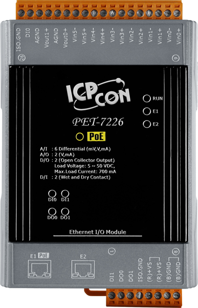 Модуль ICP DAS PET-7226 является надёжным и универсальным решением для интеграции в системы автоматизации и мониторинга, обеспечивая высокую гибкость и совместимость с различным оборудованием.