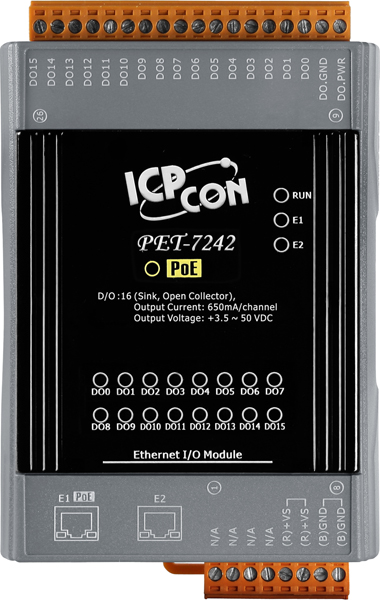 Модуль PET-7242 CR от ICP DAS представляет собой промышленный модуль ввода-вывода с двумя портами Ethernet и 16 каналами дискретного вывода. Он предназначен для интеграции в системы автоматизации, требующие надежного и эффективного управления цифровыми сигналами через Ethernet-сеть.