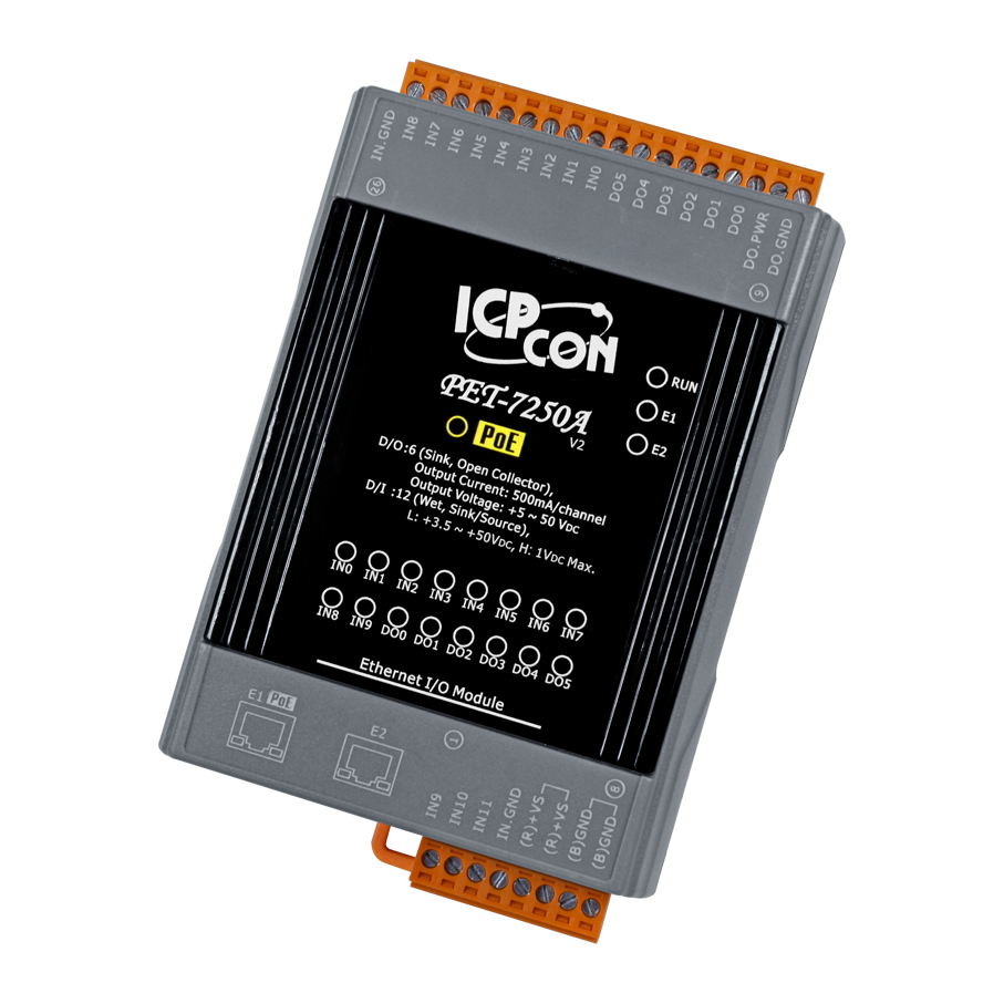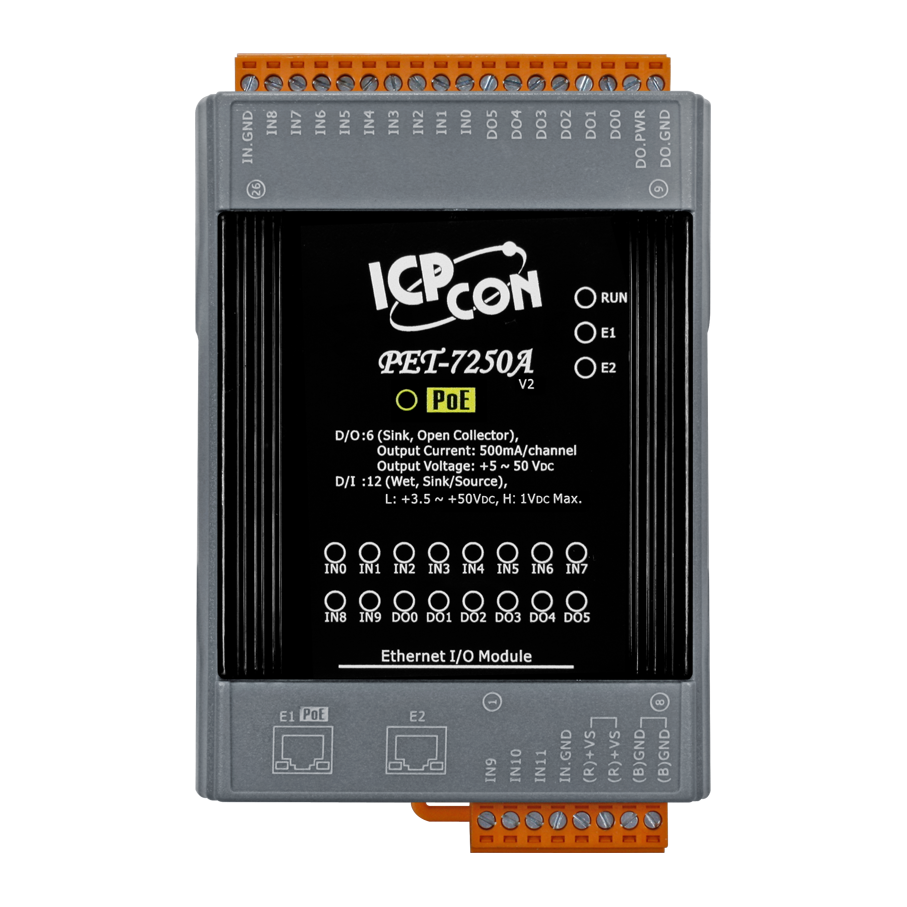 Модуль PET-7250A CR от ICP DAS представляет собой Ethernet-устройство с функциями ввода-вывода, оснащённое 12 каналами дискретного ввода и 6 каналами дискретного вывода. Он интегрирует два порта Ethernet, функционирующих как 2-портовый коммутатор, и поддерживает питание по технологии PoE (Power over Ethernet), что упрощает установку и снижает потребность в дополнительных источниках питания.