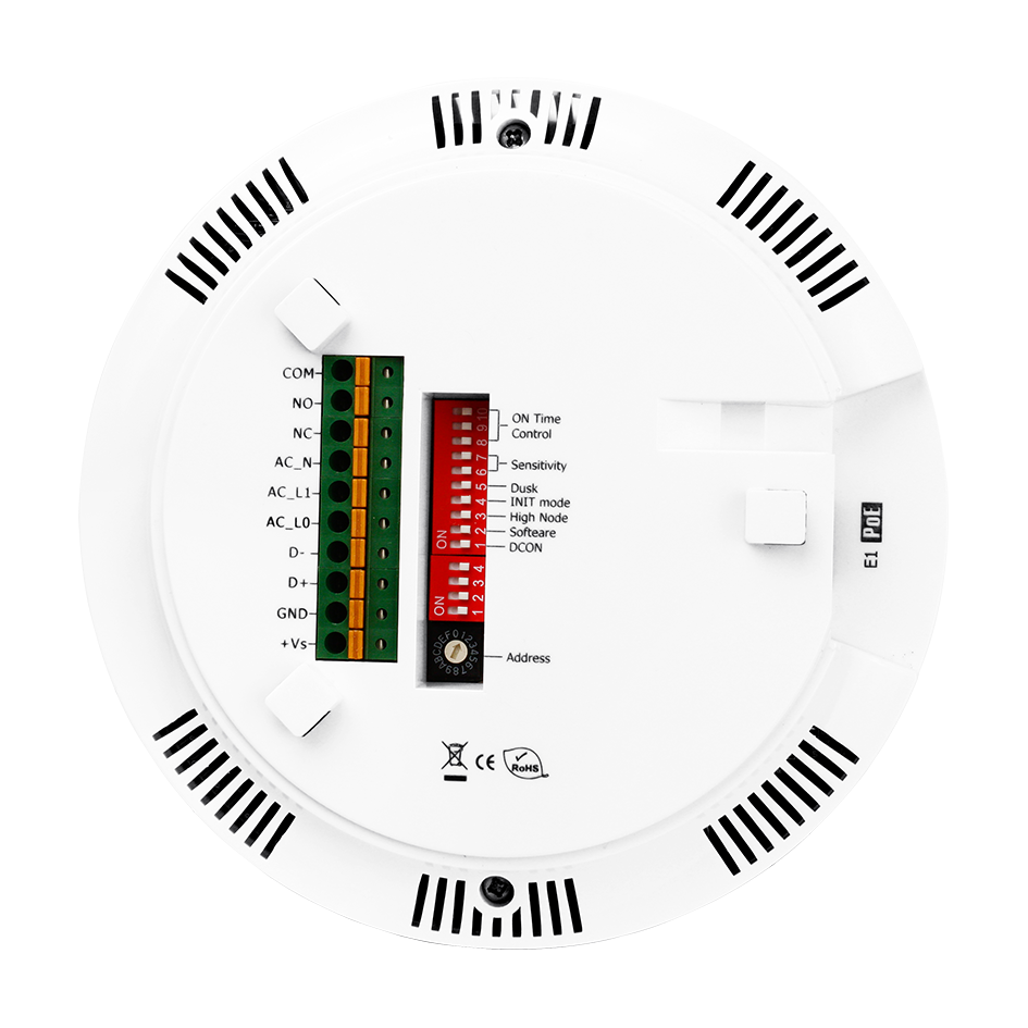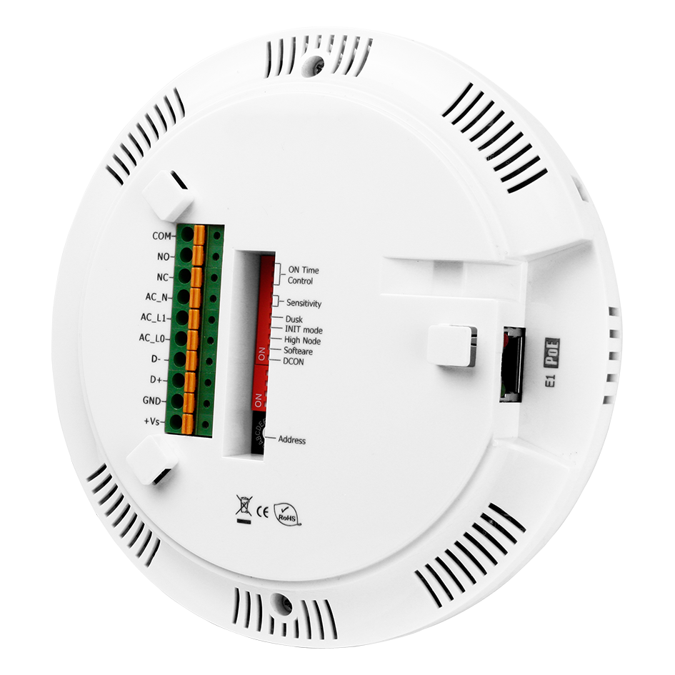 Датчик PIR-230-E CR от компании ICP DAS представляет собой интегрированное устройство, сочетающее функции обнаружения движения, измерения температуры и влажности, а также управления с помощью релейного выхода. Это решение предназначено для применения в промышленных и коммерческих системах автоматизации, где требуется мониторинг окружающей среды и управление освещением или другими устройствами на основе сенсорных данных.
