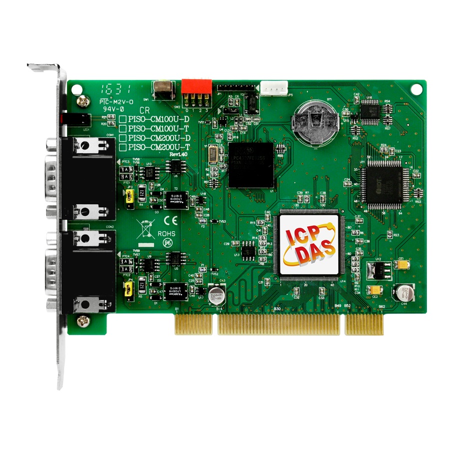 Плата PISO-CM200U-D от компании ICP DAS представляет собой высокопроизводительный интерфейсный адаптер для Controller Area Network (CAN) с двумя изолированными портами. Устройство предназначено для интеграции в системы с шиной Universal PCI, обеспечивая надежную и эффективную связь в промышленных приложениях.