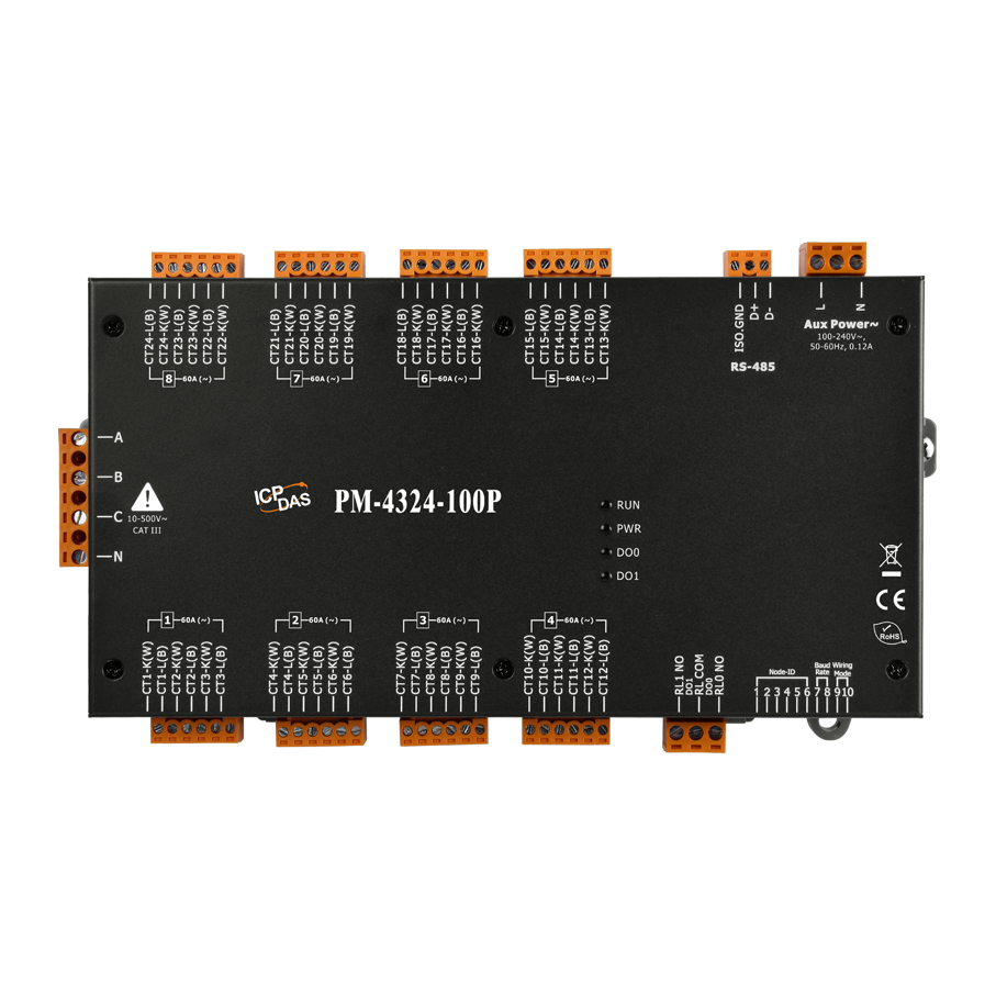 Интеллектуальный многоканальный измеритель параметров сети PM-4324-100P Modbus RTU, Multi-Channel Power Meter (60 A)