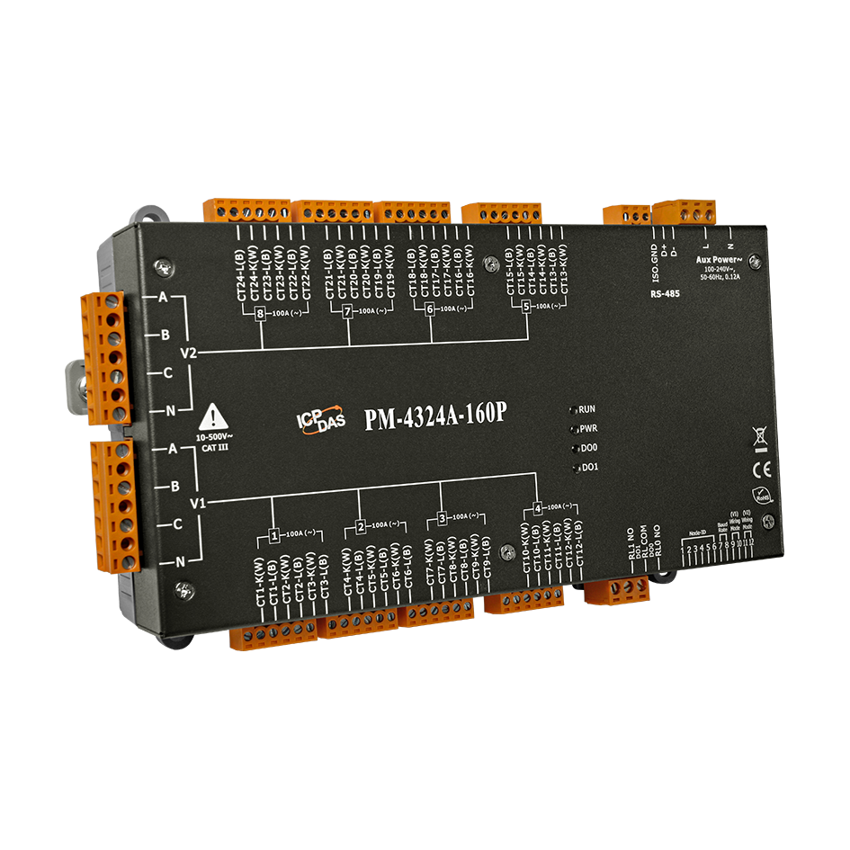Измеритель PM-4324A-160P CR от компании ICP DAS представляет собой интеллектуальный многоканальный прибор для мониторинга параметров электрической сети. Он оснащён 8 каналами для трёхфазных систем или 24 каналами для однофазных, что обеспечивает гибкость в применении на различных объектах. В комплект входят трансформаторы тока с внутренним диаметром 16 мм и номинальным током 100 А, что упрощает установку и повышает точность измерений.