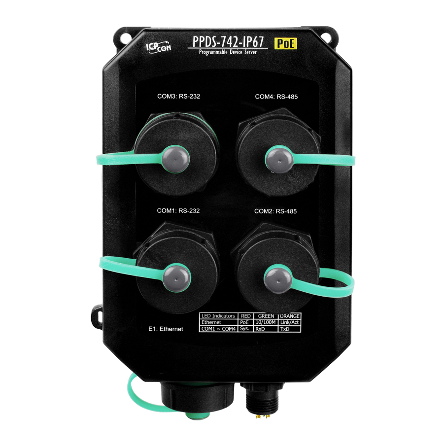 Преобразователь ICP DAS PPDS-742-IP67 CR представляет собой программируемый сервер устройств, предназначенный для интеграции последовательных интерфейсов RS-232 и RS-485 в Ethernet-сети. Это решение обеспечивает эффективную связь между промышленным оборудованием и современными системами автоматизации, поддерживая протоколы Modbus RTU/ASCII и Modbus TCP.
