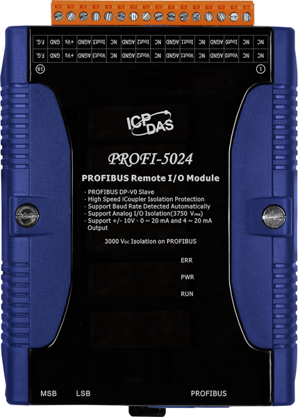 Модуль PROFI-5024 CR от компании ICP DAS представляет собой устройство удалённого ввода-вывода, предназначенное для интеграции в системы автоматизации, использующие протокол PROFIBUS DP. Этот модуль обеспечивает 4 канала изолированного аналогового вывода, поддерживающего как напряжение, так и ток, что делает его универсальным решением для различных промышленных приложений.