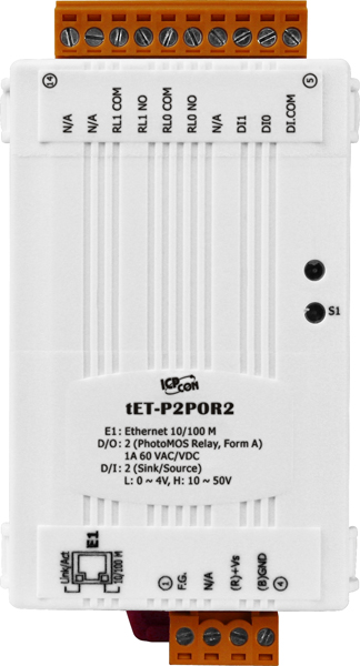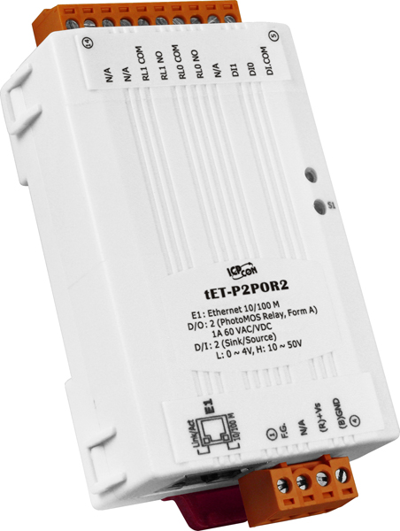 Модуль tET-P2POR2 CR от ICP DAS представляет собой компактное Ethernet-устройство, оснащённое двумя каналами дискретного ввода и двумя релейными выходами типа PhotoMOS. Это решение предназначено для интеграции в системы автоматизации, требующие надёжного ввода и вывода сигналов в реальном времени.