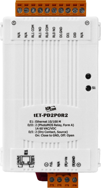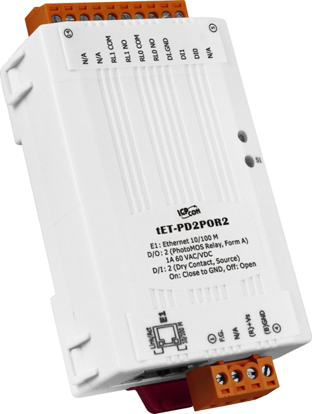 Модуль tET-PD2POR2 CR от компании ICP DAS представляет собой компактное Ethernet-устройство, предназначенное для интеграции в системы автоматизации и мониторинга. Он оснащён двумя каналами дискретного ввода (сухой контакт) и двумя каналами релейного вывода (PhotoMOS), что расширяет возможности взаимодействия с различными промышленными компонентами.