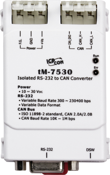 Преобразователь tM-7530 CR от ICP DAS представляет собой надежное и эффективное решение для интеграции интерфейсов RS-232 и CAN в промышленных приложениях, обеспечивая высокую производительность и гибкость настройки под индивидуальные потребности.