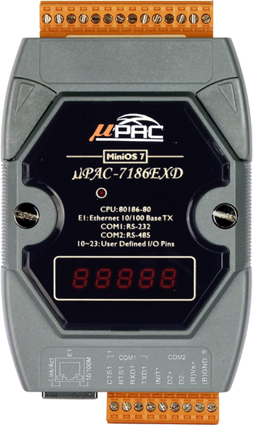 Контроллер uPAC-7186EXD-G CR от компании ICP DAS представляет собой компактное промышленное устройство, предназначенное для интеграции в системы автоматизации и управления. Оснащённый 5-разрядным 7-сегментным светодиодным дисплеем, он обеспечивает визуальную индикацию состояния системы, что упрощает мониторинг и диагностику в реальном времени.