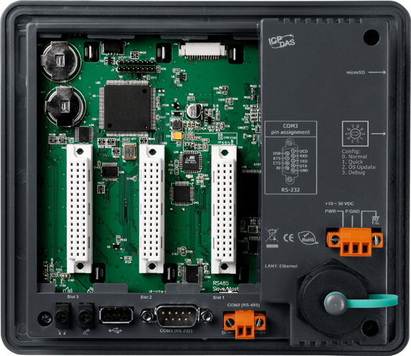 - Слоты расширения: 3 слота для высокопрофильных модулей ввода-вывода серий I-8K и I-87K, обеспечивающие гибкость в расширении функциональности системы.