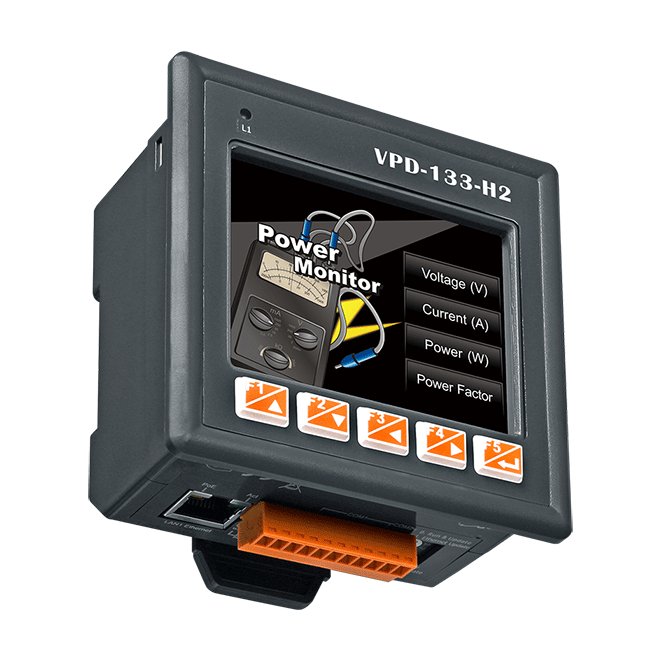 VPD-133-H2 поддерживает различные промышленные протоколы связи, включая Modbus TCP (сервер и клиент), Modbus RTU (ведомый и мастер) и DCON (ведомый), что обеспечивает совместимость с широким спектром устройств и систем. Наличие двух последовательных портов (RS-232/RS-485 и RS-485) и одного порта Ethernet 10/100 Base T(X) (RJ45) позволяет интегрировать панель в существующие системы автоматизации и удаленно обновлять прошивку через USB-порт.