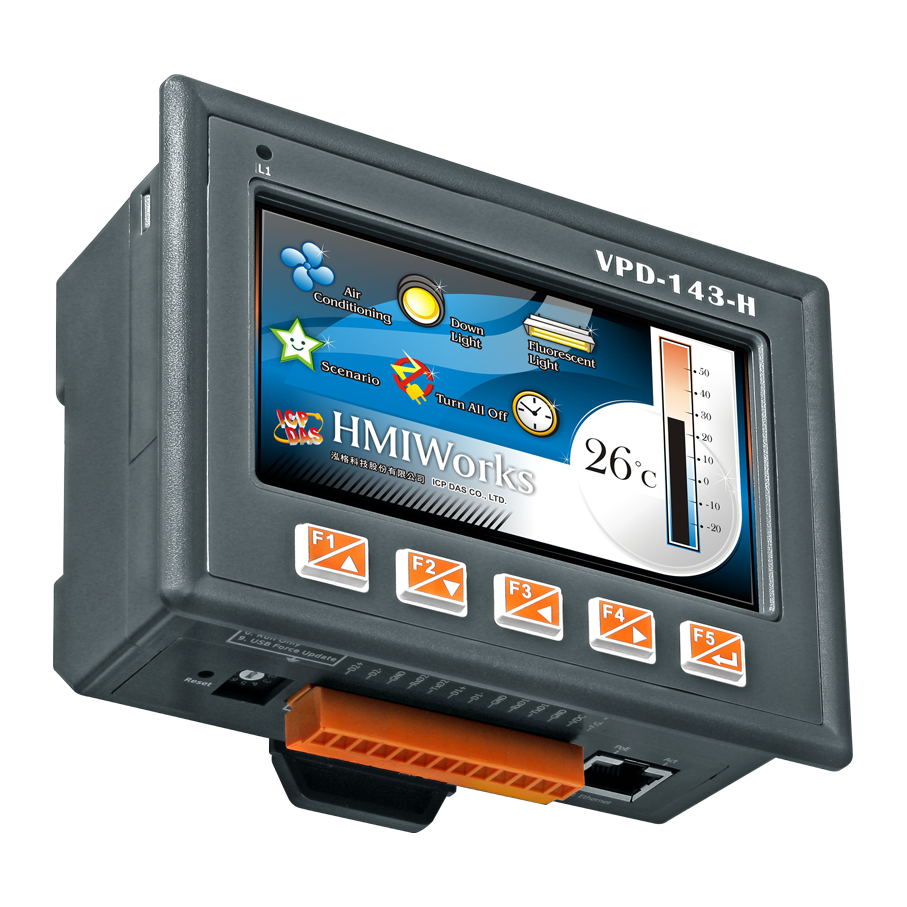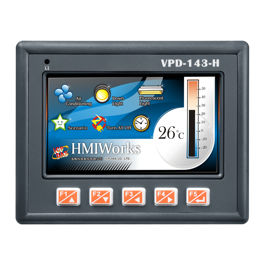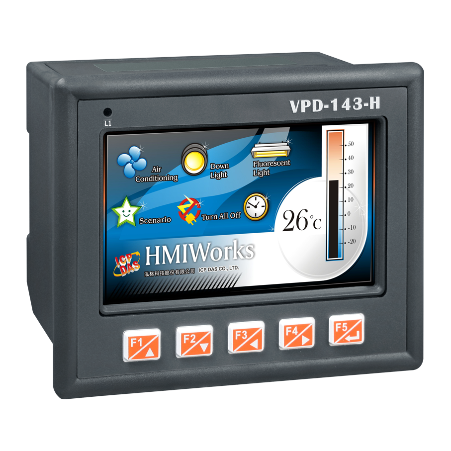 Сенсорная панель VPD-143-H от ICP DAS представляет собой устройство человеко-машинного интерфейса (HMI) с диагональю экрана 4,3 дюйма, предназначенное для эффективного взаимодействия оператора с промышленными системами. Панель оснащена сенсорным экраном с разрешением 480 x 272 пикселей, обеспечивающим четкое отображение информации и интуитивное управление. Яркость экрана составляет 400 кд/м², что гарантирует хорошую видимость в различных условиях освещенности. Сенсорный экран выполнен по резистивной технологии, обеспечивая надежную работу в промышленных условиях. Время работы подсветки экрана достигает 20 000 часов, что способствует долговечности устройства.