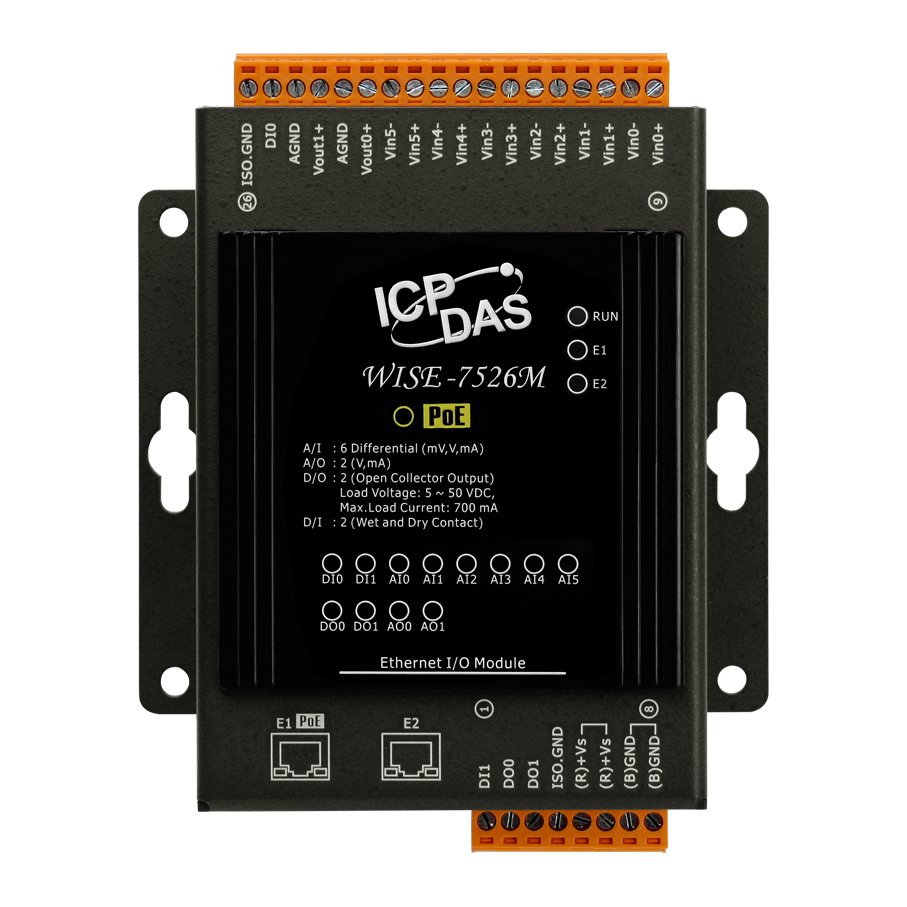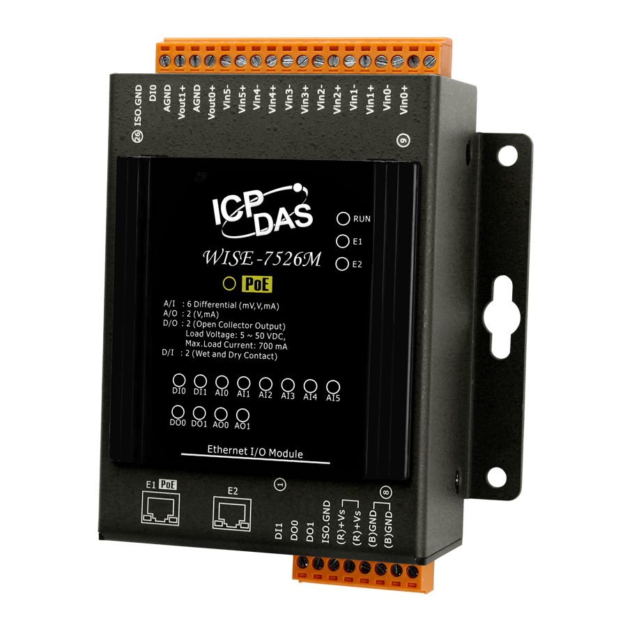 Модуль WISE-7526M от компании ICP DAS представляет собой интеллектуальное устройство ввода-вывода, предназначенное для интеграции в системы автоматизации и мониторинга. Он оснащён 6 каналами аналогового ввода, 2 каналами аналогового вывода, 2 каналами дискретного ввода и 2 каналами дискретного вывода, что обеспечивает гибкость при подключении различных типов датчиков и исполнительных механизмов.