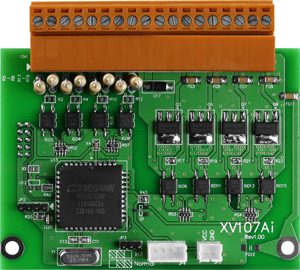 Модуль XV107A CR от компании ICP DAS представляет собой плату расширения для контроллеров, оснащенную 8 каналами дискретного ввода (DI) и 8 каналами дискретного вывода (DO). Устройство предназначено для интеграции в системы автоматизации, требующие надежного и изолированного ввода-вывода сигналов.