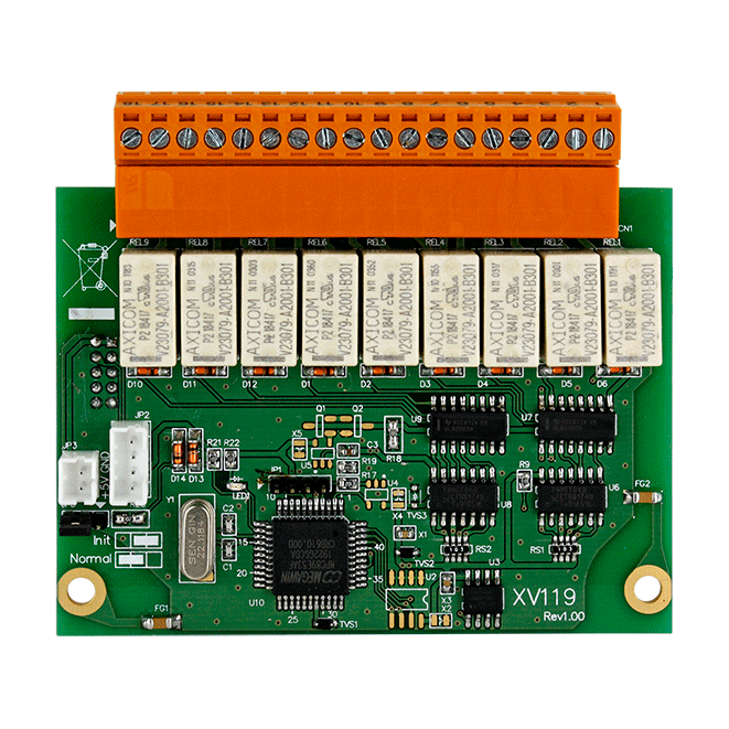 Модуль расширения XV119 CR от компании ICP DAS предназначен для интеграции в промышленные системы автоматизации, обеспечивая 9 каналов сигнальных релейных выходов. Это устройство позволяет эффективно управлять различными нагрузками, такими как электромагнитные клапаны, насосы и другие исполнительные механизмы, требующие надежного и быстрого переключения.