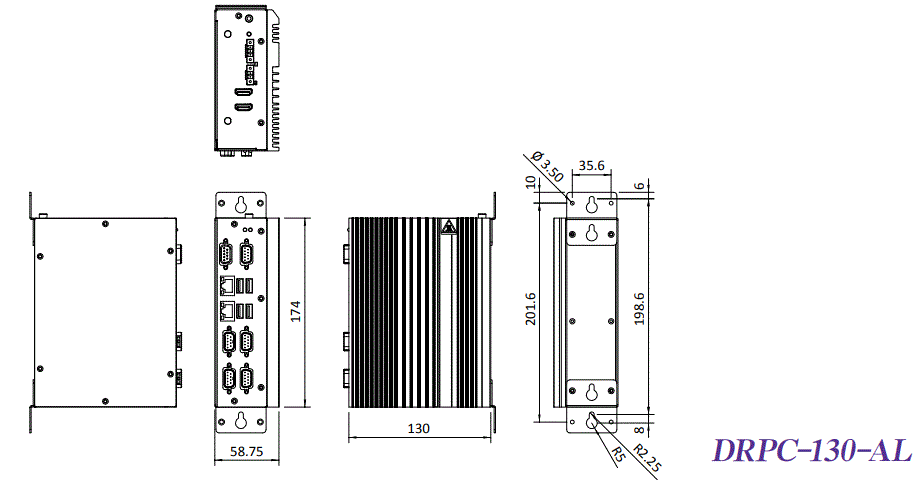 Диапазон входного напряжения от 12 до 24 В DC и рабочая температура от -20°C до +60°C позволяют использовать DRPC-130-AL-E1/4GB в различных промышленных условиях. Возможность монтажа на DIN-рейку и компактные размеры (174 х 130 х 58,75 мм) упрощают интеграцию в ограниченные пространства.