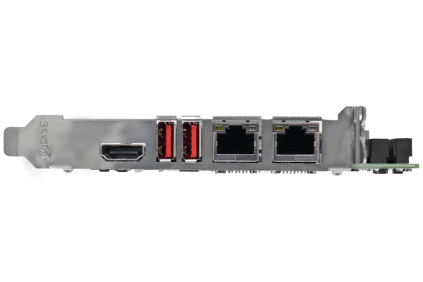 Сетевые возможности платы включают два порта 2,5 GbE (RJ-45) с контроллерами Intel I226 LM и I226-V, обеспечивая высокоскоростное подключение к сети и эффективную обработку данных. Для вывода видео предусмотрены интерфейсы HDMI и DisplayPort, поддерживающие высокое разрешение и частоту обновления, что делает плату подходящей для приложений, требующих визуализации.