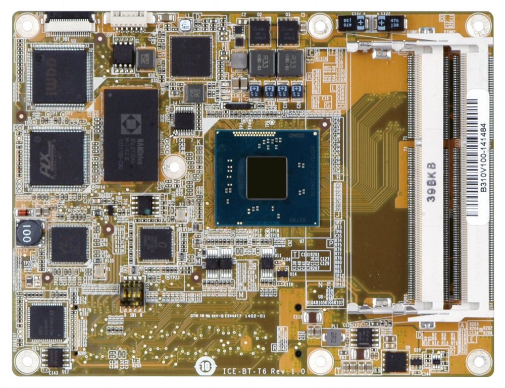 Модуль поддерживает до 8 ГБ оперативной памяти DDR3L с частотой 1333/1066 МГц, обеспечивая необходимую пропускную способность для выполнения многозадачных операций. Для хранения данных предусмотрены два порта SATA II (3 Гбит/с), позволяющие подключать различные устройства хранения информации.
