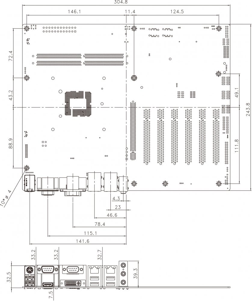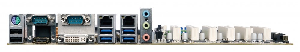 Видеовыходы DVI-I и HDMI™ позволяют подключать два независимых дисплея, что полезно в системах с несколькими мониторами. Для сетевых подключений имеются два порта Gigabit Ethernet (LAN), обеспечивающие надежную и быструю передачу данных. Аудиоинтерфейс Realtek ALC662 HD поддерживает 5.1-канальный звук, что может быть полезно в приложениях, требующих аудиовыхода.