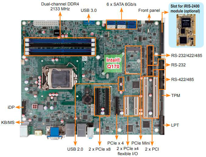 Промышленная материнская плата IMBA-Q170-i2 от IEI Integration предназначена для построения надежных и высокопроизводительных вычислительных систем в промышленных приложениях. Она поддерживает процессоры Intel 6-го и 7-го поколения с сокетом LGA 1151, включая Core i7/i5/i3, Pentium и Celeron, обеспечивая гибкость выбора процессора в зависимости от требований задачи.