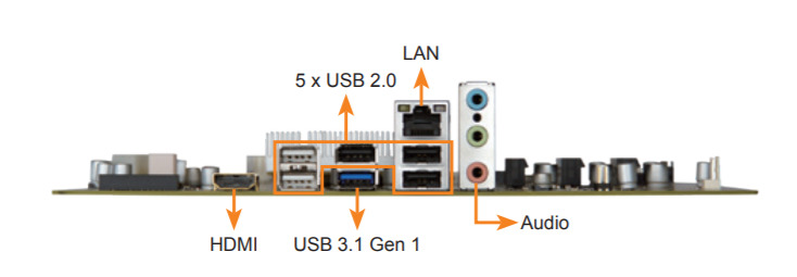 - USB-порты: пять USB 2.0 и один USB 3.1 для подключения периферийных устройств.