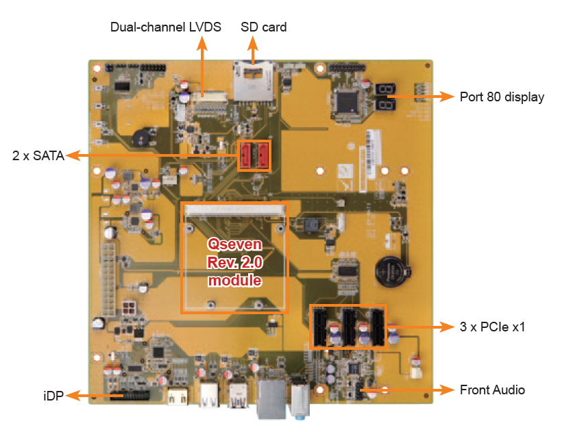 - Процессорный модуль: поддержка Qseven Rev. 2.0.