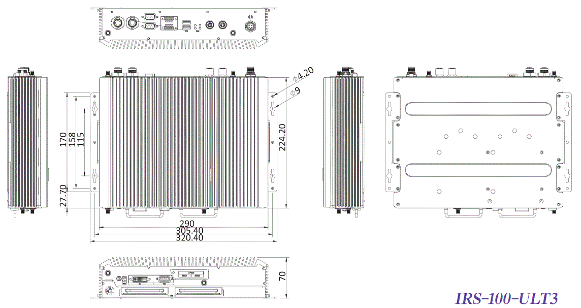 Компактные размеры (290 x 69 x 225 мм) и вес 3,9 кг позволяют легко интегрировать IRS-100-ULT3-i5/4G в ограниченные пространства транспортных средств. Пассивная система охлаждения снижает уровень шума и повышает надежность устройства. Опциональные модули расширения, такие как Wi-Fi, Bluetooth и LTE, обеспечивают гибкость в настройке системы связи в зависимости от потребностей заказчика.