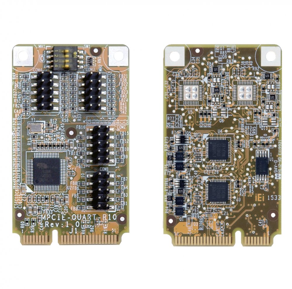 Плата расширения PCI Express Mini IEI MPCIE-UART-KIT01 обеспечивает четыре порта RS-232/422/485, позволяя интегрировать дополнительные последовательные интерфейсы в системы с ограниченным пространством.