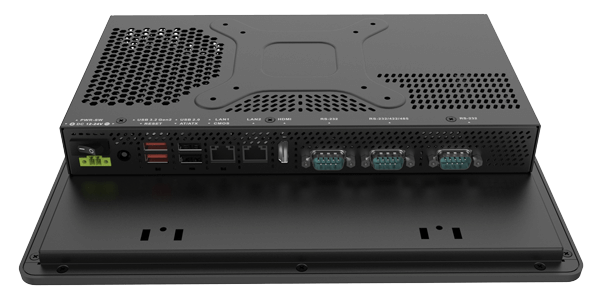 Устройство оснащено 10,4-дюймовым ЖК-дисплеем с разрешением 800 x 600 пикселей и проекционно-емкостным сенсорным экраном, обеспечивающим точный отклик и возможность работы в перчатках. Передняя панель имеет защиту по стандарту IP65, что гарантирует защиту от пыли и водяных брызг. В качестве процессора используется Intel Celeron J6412 с тактовой частотой до 2,6 ГГц, обеспечивающий эффективную обработку данных при низком уровне энергопотребления. Оперативная память объемом 8 ГБ LPDDR4x распаяна на плате, что повышает надежность устройства. Питание осуществляется от источника постоянного тока с диапазоном входного напряжения 12–24 В, что делает устройство совместимым с различными промышленными источниками питания.