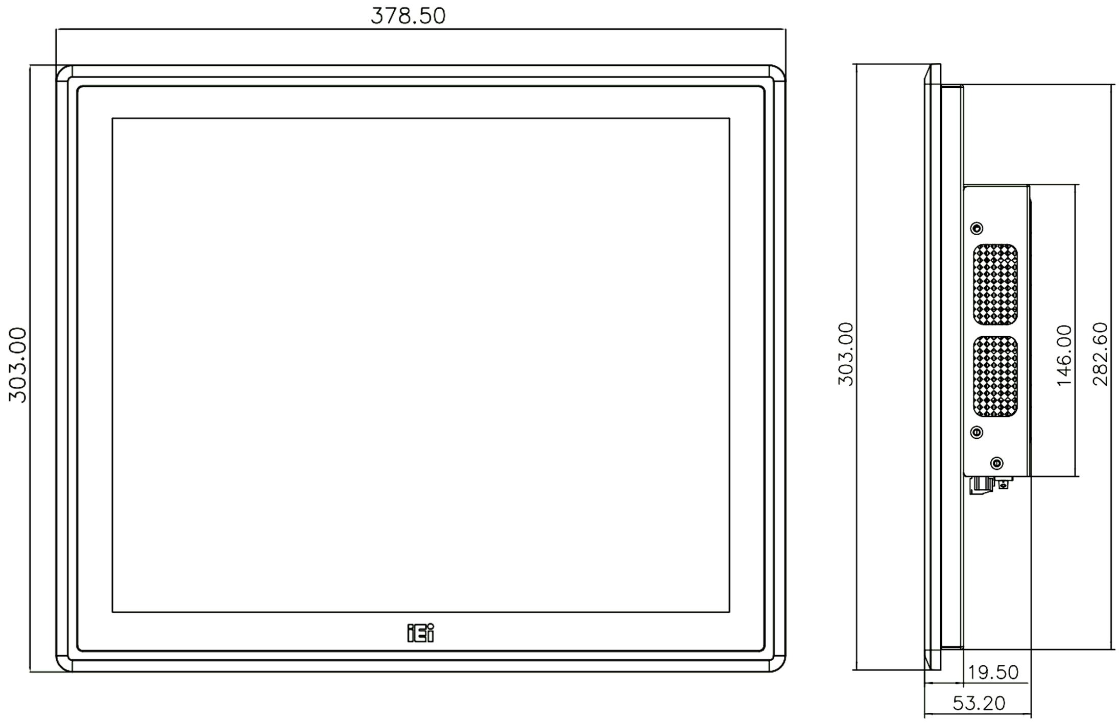 Устройство оснащено 15-дюймовым дисплеем с разрешением 1024 x 768 пикселей, проекционно-емкостным сенсорным экраном с антибликовым покрытием и защитой от ультрафиолетового излучения. Передняя панель имеет степень защиты IP65, обеспечивая защиту от пыли и влаги. В качестве процессора используется Intel Celeron J6412 с тактовой частотой до 2,6 ГГц и тепловым пакетом 10 Вт. Оперативная память составляет 8 ГБ LPDDR4x, установленной непосредственно на плате. Для хранения данных предусмотрены разъемы M.2 2280 M-key (PCIe Gen3 x2) и 2,5-дюймовый отсек для HDD/SSD. Сетевые возможности включают два порта 2,5 Гбит/с Ethernet, обеспечивающие высокоскоростное подключение. Дополнительные интерфейсы: два порта USB 3.2 Gen2x1, четыре порта USB 2.0, один порт RS-232/422/485, HDMI и разъемы для питания. Устройство поддерживает операционные системы Windows 10 IoT и Linux.