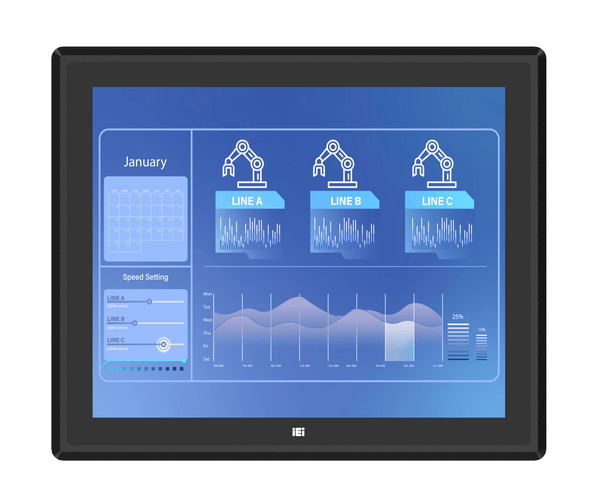 Панельный компьютер IEI PPC2-C19-ADL-P/8G на базе процессора Intel Pentium Gold G7400 и 19-дюймового сенсорного экрана подходит для применения в автоматизированных системах управления, производственных линиях, транспортной инфраструктуре и других областях, где требуется надёжное и высокопроизводительное оборудование для обработки данных и управления процессами.