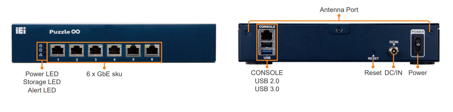 Компьютер PUZZLE-IN003A-C3 Desktop Network Appliance with Intel® ATOM® C3336 Processor , 6 x 1GbE on Board with up to 1 bypass segments, eMMC 32GB & 2x M.2 slot