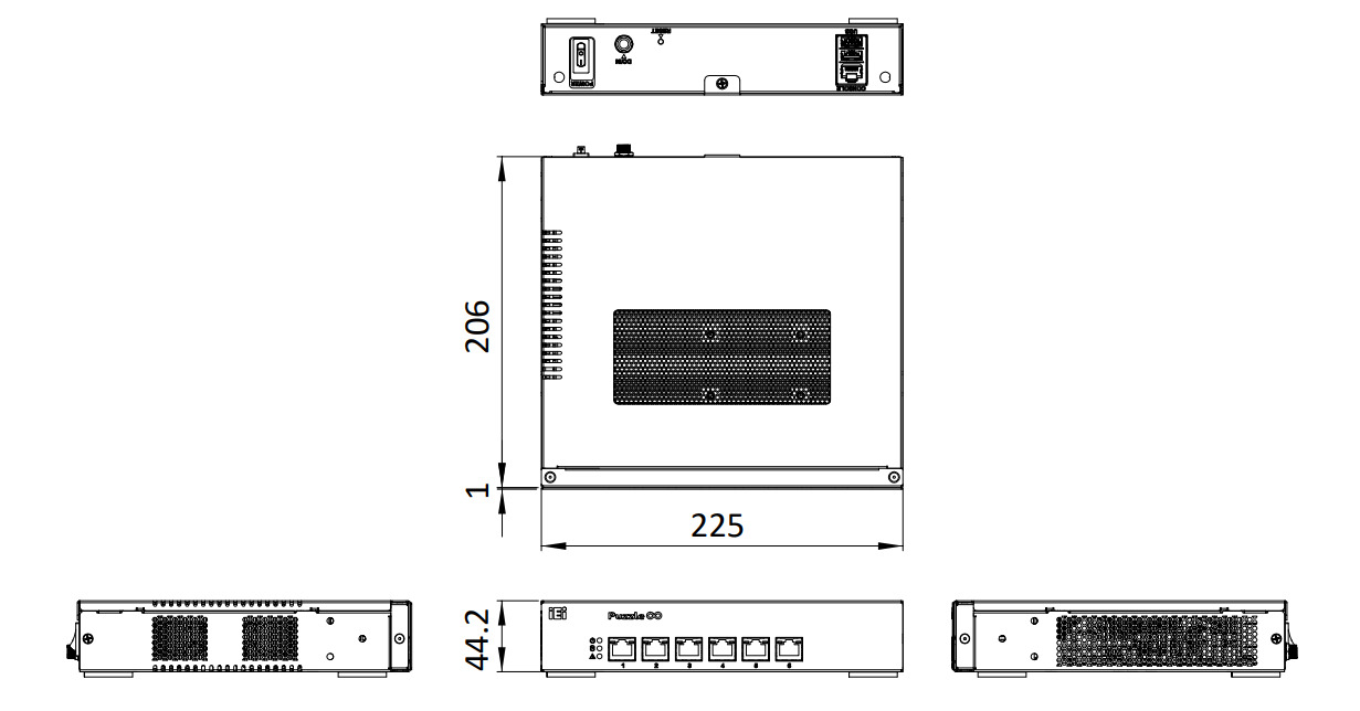 - Габариты: 225 x 206 x 44,2 мм, высота 1U.