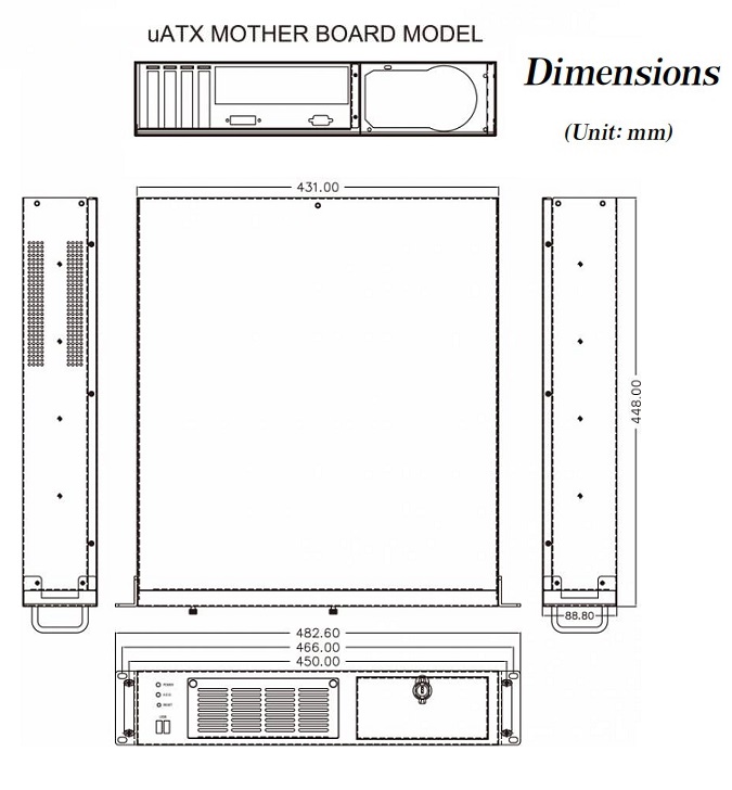 - Габаритные размеры: 448 x 431 x 88 мм.