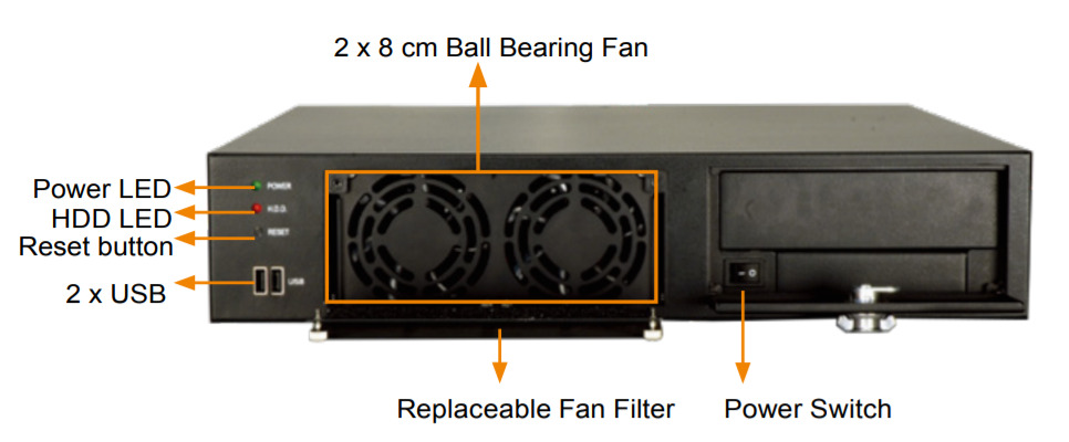 - Высота корпуса: 2U, соответствующая стандарту 19-дюймовых стоек.