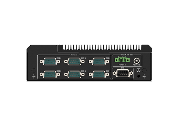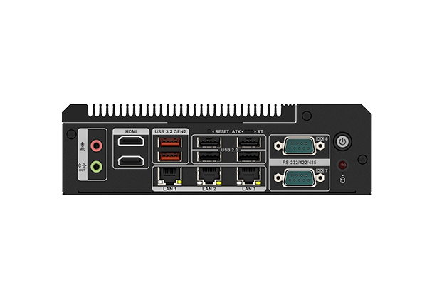 Имеет три порта Ethernet 2,5 Гбит/с, шесть портов RS-232 и два комбинированных порта RS-232/422/485, что обеспечивает гибкость подключения различных устройств. Для расширения функциональности предусмотрены слоты M.2: Key A (PCIe Gen3 x1/USB 2.0), Key B (SATA/USB 2.0) и Key M (PCIe Gen3 x2). Поддерживает два независимых видеовыхода HDMI с разрешением до 4K при 30 Гц. Опционально доступны модули Wi-Fi, Bluetooth и LTE для беспроводной связи.