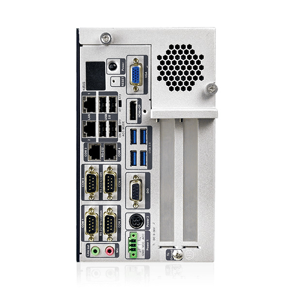 Компьютер оснащен разнообразными интерфейсами ввода/вывода: два порта Gigabit Ethernet (RJ-45) для сетевого подключения, четыре порта RS-232 и два порта RS-232/422/485 для последовательных устройств, а также восемь портов USB (четыре USB 2.0 и четыре USB 3.1 Gen 1) для подключения периферийных устройств. Видеоинтерфейсы включают VGA, HDMI и DisplayPort, что позволяет подключать до трех независимых дисплеев. Слоты расширения включают PCIe x16, PCI, Half-size PCIe Mini и Full-size PCIe Mini с поддержкой mSATA, обеспечивая гибкость в добавлении дополнительных модулей и карт.
