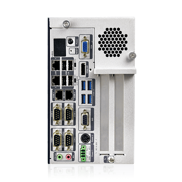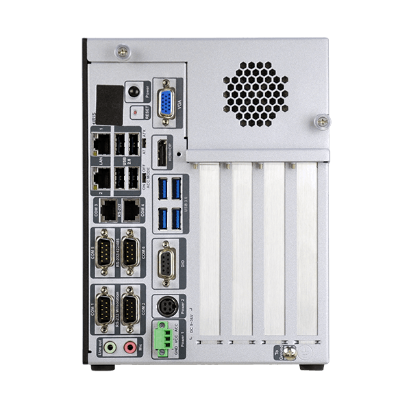 Оснащен процессором Intel® Core™ i7-6700TE с тактовой частотой 2,4 ГГц и чипсетом Intel® Q170. Поддерживает до 64 ГБ оперативной памяти DDR4 SO-DIMM. Имеет два отсека для 2,5-дюймовых SATA HDD/SSD с поддержкой RAID 0/1. Видеовыходы: VGA, HDMI и DisplayPort. Сетевые интерфейсы: два порта Gigabit Ethernet с поддержкой PoE IEEE 802.3af. Порты ввода-вывода: четыре RS-232, два RS-232/422/485, четыре USB 2.0, четыре USB 3.2, GPIO и аудиовыходы. Слоты расширения: PCIe x16, PCI, два Mini PCIe. Диапазон входного напряжения: 9–36 В DC. Рабочая температура: от –20°C до +45°C. Габариты: 255,2 x 205 x 121,5 мм; вес: 4,2 кг.